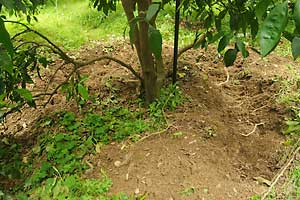 樹の回りを掘り返しています。