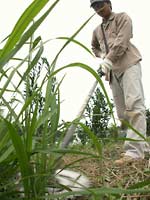 半日、草刈機を振り回せば体力は限界。