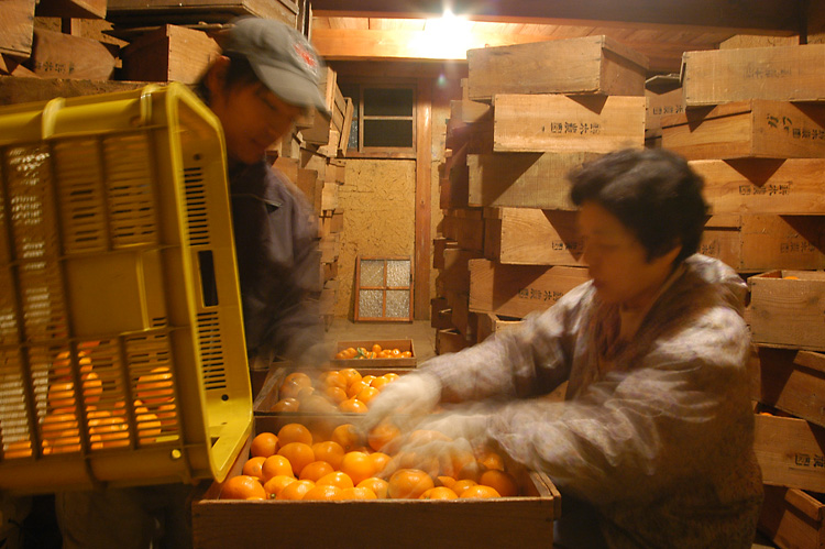 作業みかんを選別し、詰めるのは主に母が。